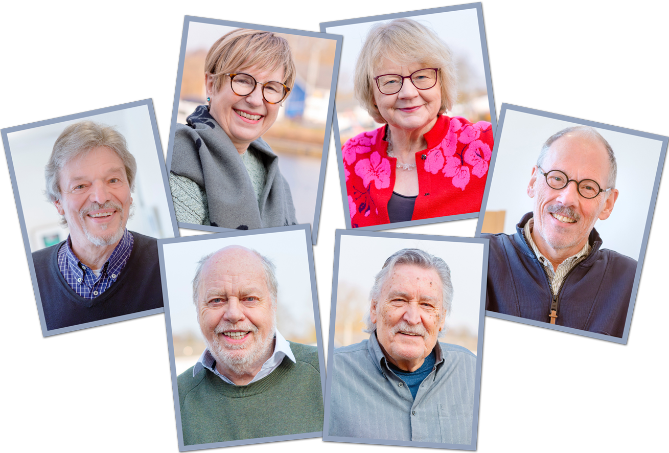 Von links nach rechts: Andreas Wolf (Schriftführer), Sybille Winter (Vizepräsidentin), Dr. Maren Köster-Hetzendorf (Präsidentin), Dr. Hans Peter Kölzer (Schatzmeister); unten von links nach rechts: Klaus Horstmann (Mitgliederbetreuung), Michael Bayer (Programmdirektor).